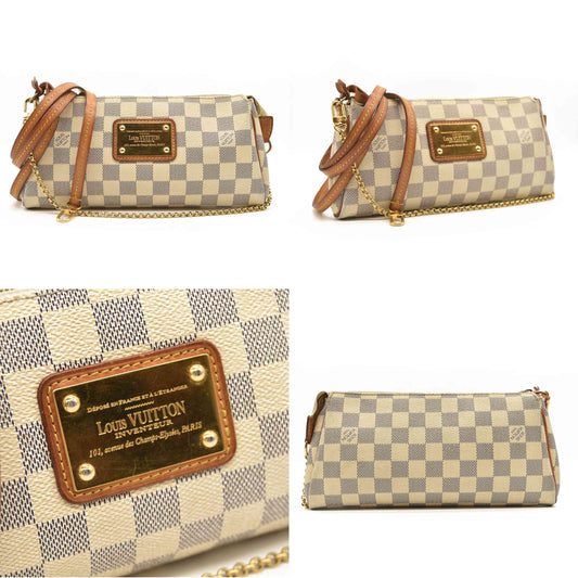 Louis Vuitton Damier Azur Eva Crossbody Shoulder Bag White Chain SN0192