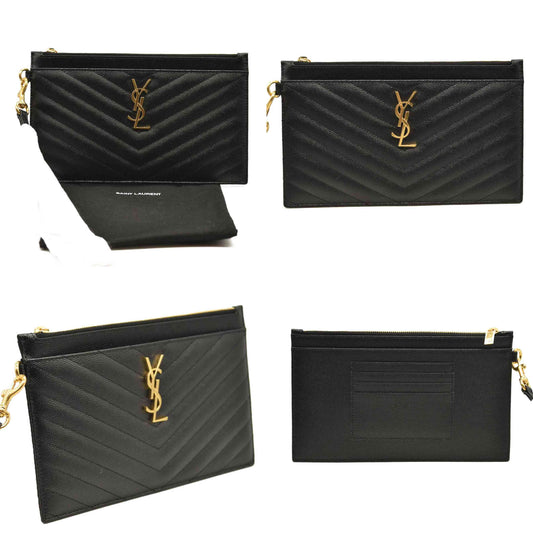 SAINT LAURENT Grain De Poudre Chevron Monogram Large Bill Pouch Black