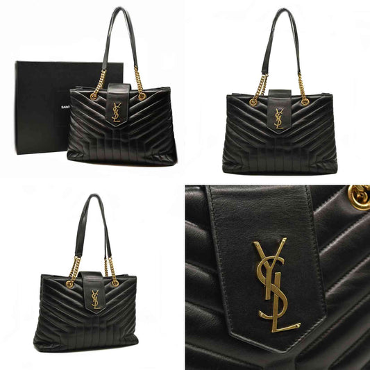 SAINT LAURENT Calfskin Y Quilted Monogram Large Loulou Shopper Black