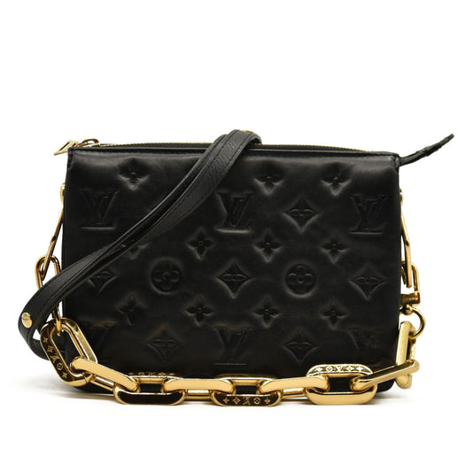 LOUIS VUITTON Lambskin Embossed Monogram Coussin BB Black