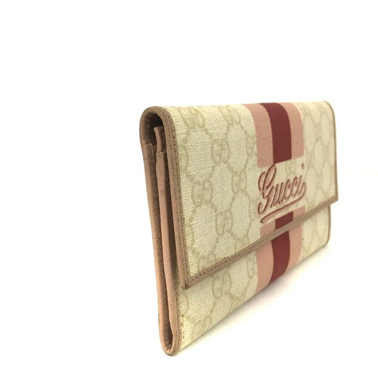 GUCCI GG Supreme Bi Folded Compact Wallet Pink and Beige
