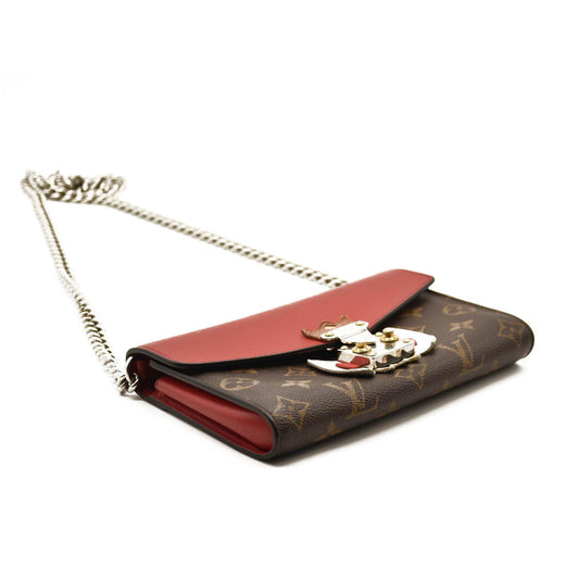 LOUIS VUITTON Monogram Tribal Mask Chain Wallet Rouge