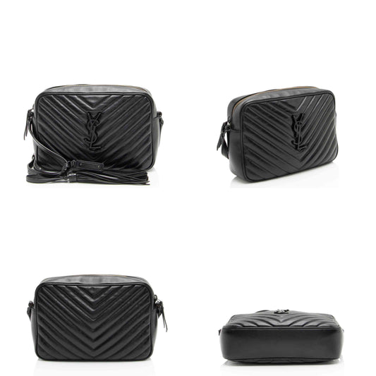 SAINT LAURENT Calfskin Matelasse Monogram Lou Camera Bag Black