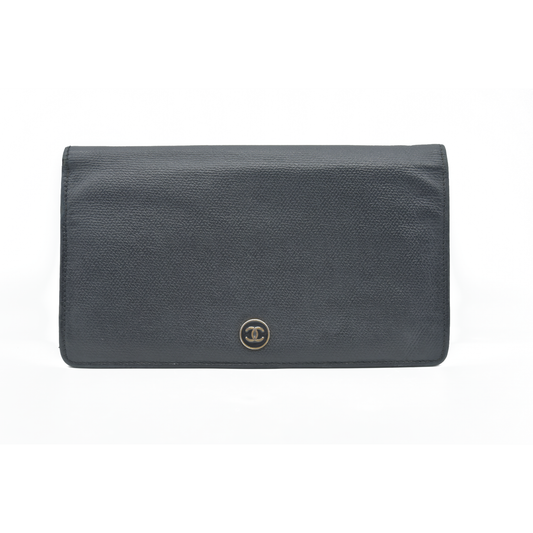CHANEL CC Long Bifold Wallet Purse Leather Black