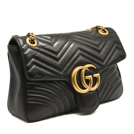 GUCCI Calfskin Matelasse Medium GG Marmont Shoulder Bag Black