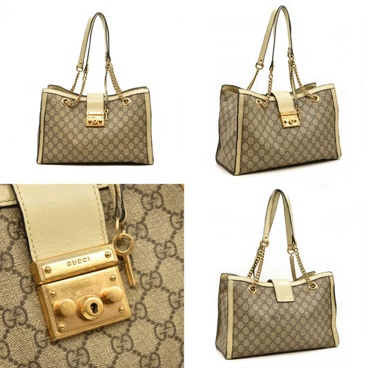 AUCTION $1990 Gucci GG Supreme Monogram Medium Padlock Tote White