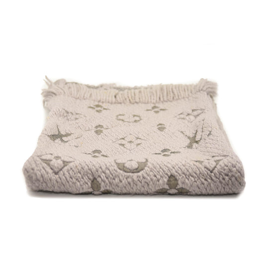 LOUIS VUITTON Wool Silk Logomania Scarf Pearl Grey