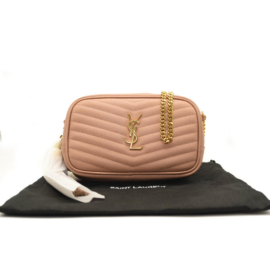 NEW SAINT LAURENT LOU MINI YSL GRAIN DE POUDRE CAMERA CROSSBODY BAG PEACH