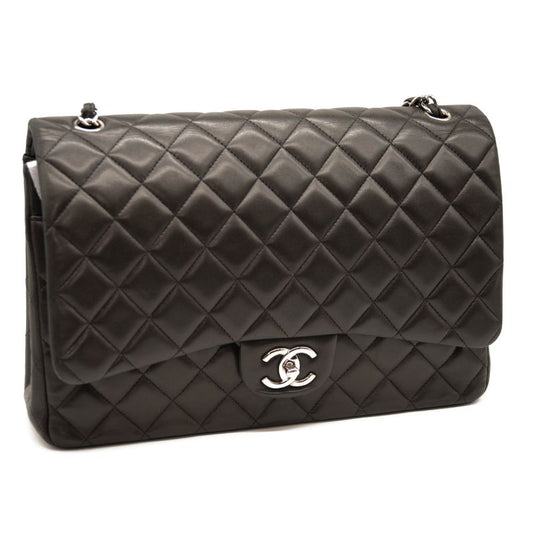 USED Chanel Lambskin Quilted Maxi Double Flap Black