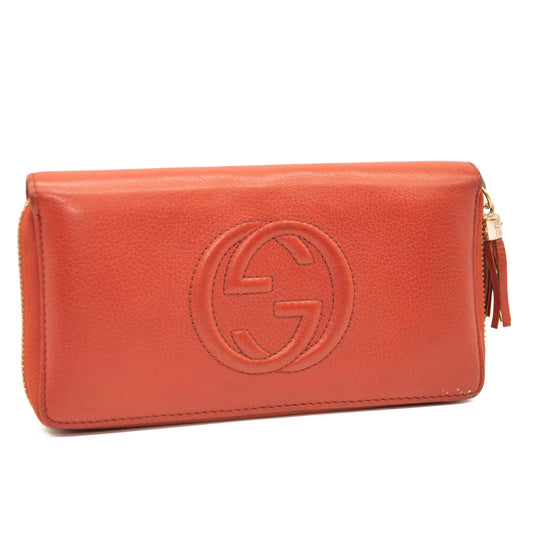 Gucci Pebbled Calfskin Soho Zip Around Wallet Red Burnt Orange