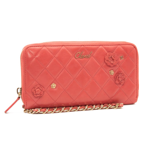 Chanel Lambskin Quilted Camellia Zip Around Wristlet Wallet Pink