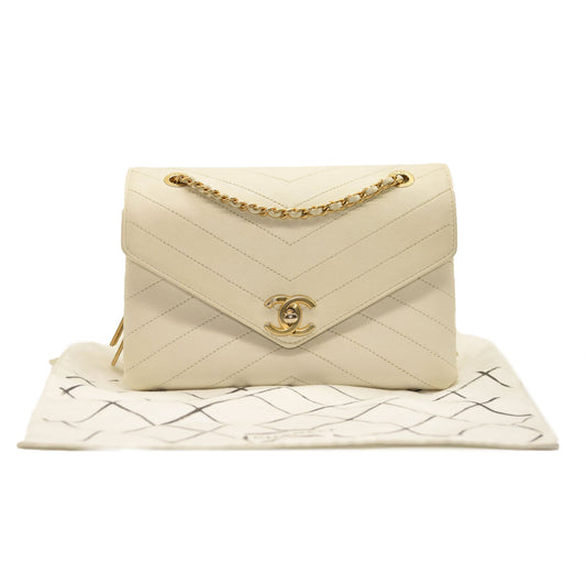 CHANEL Lambskin Chevron Quilted Envelope Flap White