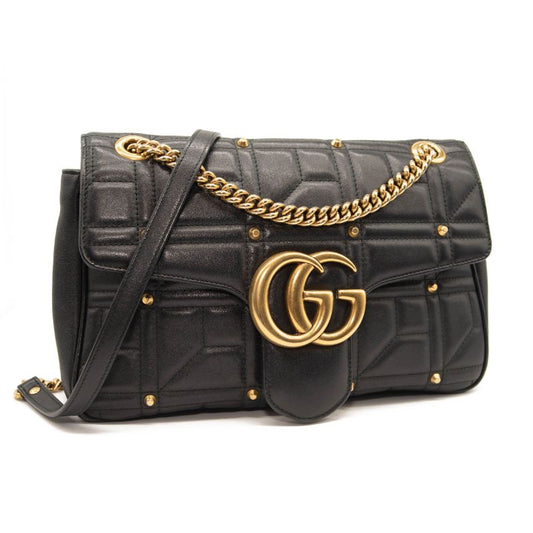 Gucci Calfskin Matelasse Studded Medium GG Marmont Shoulder Bag Black
