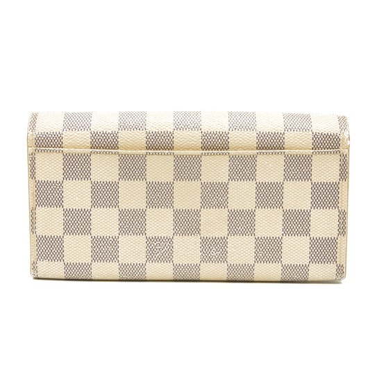 USED Louis Vuitton Damier Azur Sarah NM Flap Wallet White Canvas