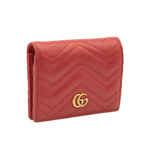 Gucci Calfskin Matelasse GG Marmont Card Case Wallet Hibiscus Red