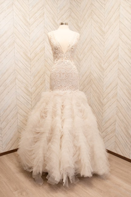 Lazaro White Lace 3650 and Tulle Mermaid Gown Modern Formal Wedding Dress