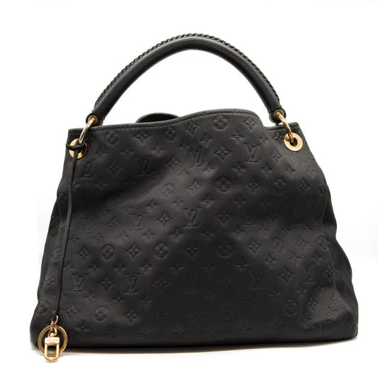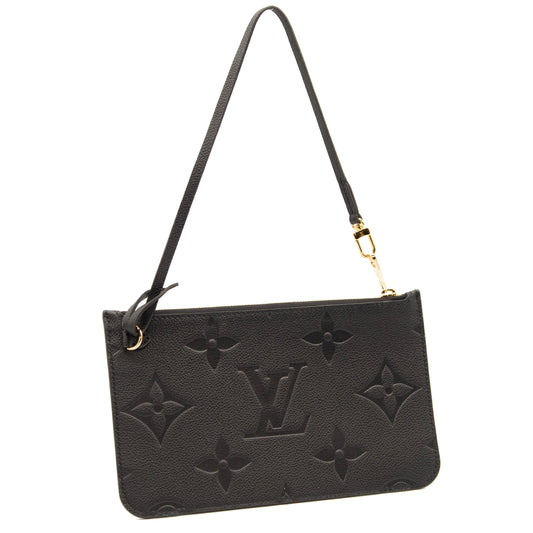 Microchipped LOUIS VUITTON Empreinte Monogram Giant Neverfull MM Pochette Black Wristlet