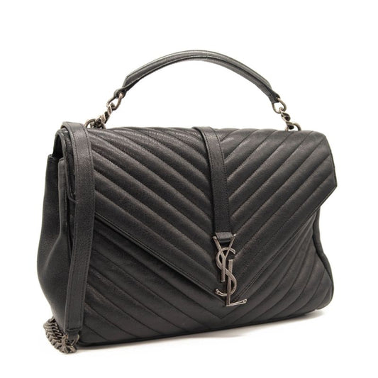 Saint Laurent Sheepskin Matelasse Chevron Monogram Large College Satchel Black Silver