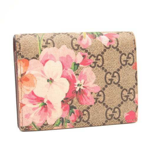 GG Supreme Monogram Blooms Card Case Wallet Beige Multicolor Dry Rose