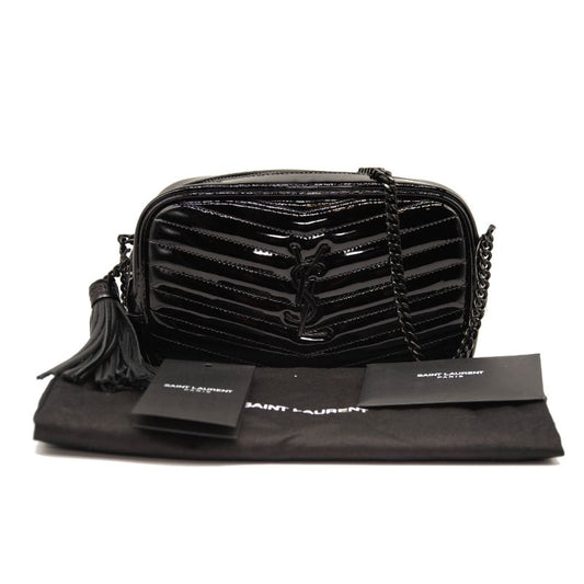 NEW Saint Laurent Matelasse Monogram Mini Lou Camera Bag Black Patent
