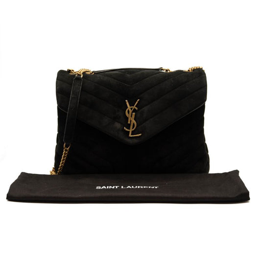 Saint Laurent Suede Y Quilted Monogram Medium Loulou Chain Satchel Black