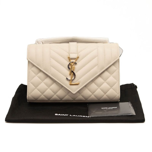 NEW Saint Laurent Tricolor YSL Monogram Small Envelope Leather Wallet On Chain