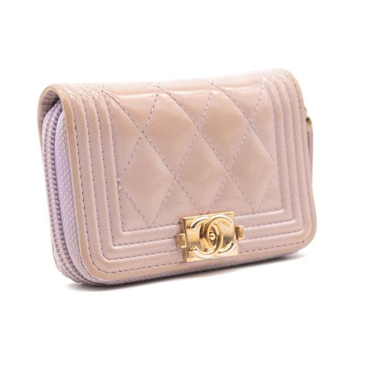 Chanel Purple Boy Patent Leather Quilted Zip Around Card Holder Lilac Wallet