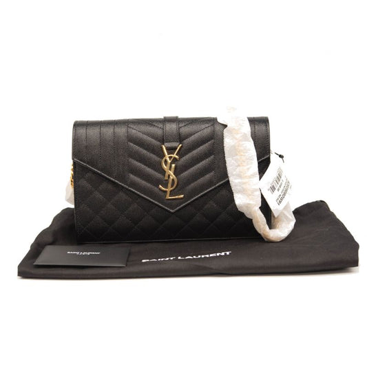 Saint Laurent Classic Monogram Chain Wallet Mixed Matelasse Leather Medium Black Gold