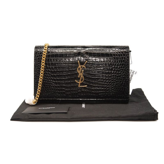Saint Laurent Croc Embossed Leather Wallet on a Chain