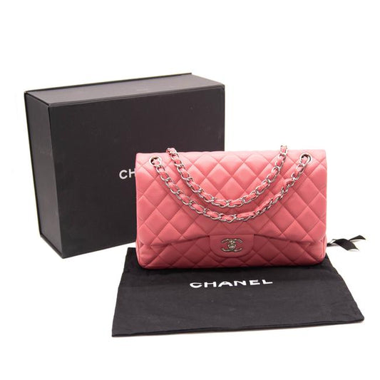 Chanel Double Flap Quilted Jumbo Pink Lambskin Leather Shoulder Bag