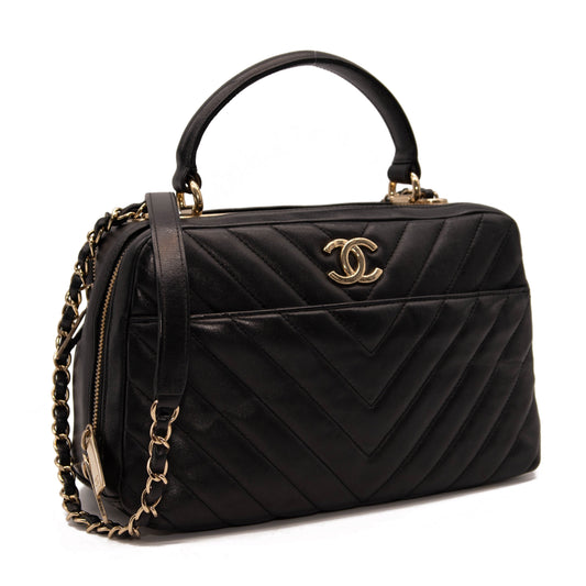 Chanel Lambskin Chevron Quilted Small Trendy CC Bowling Bag Black with Gold Hardware
