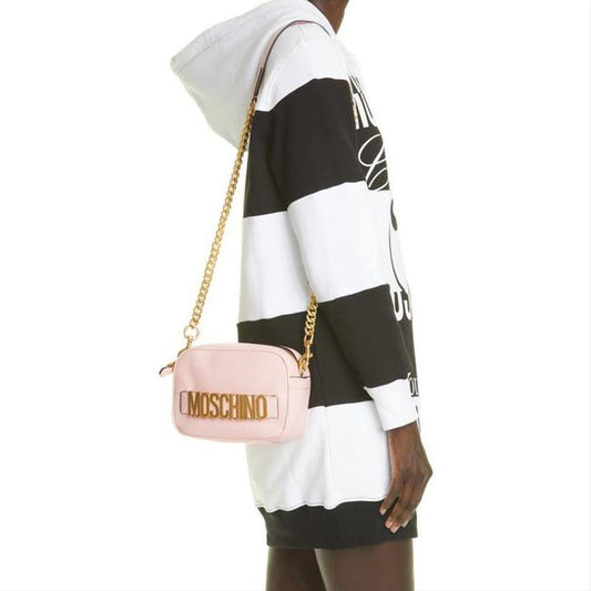 Moschino Clutch Camera Logo Convertible Cross Body Pink Leather Shoulder Bag