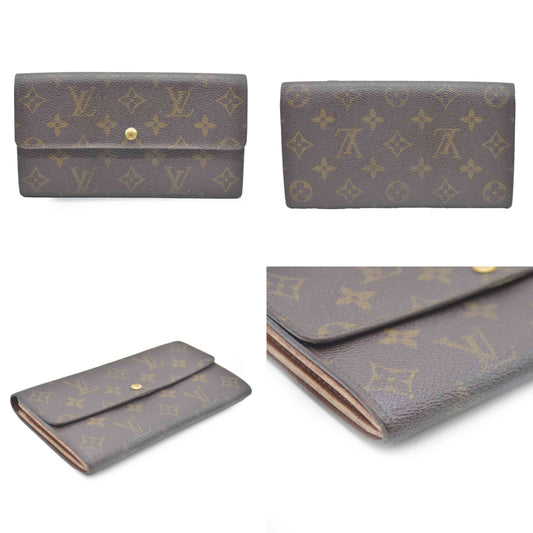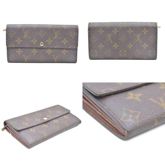 Louis Vuitton Monogram Portefeiulle Sarah Long Bifold Wallet Brown MI0972 Damaged button snap