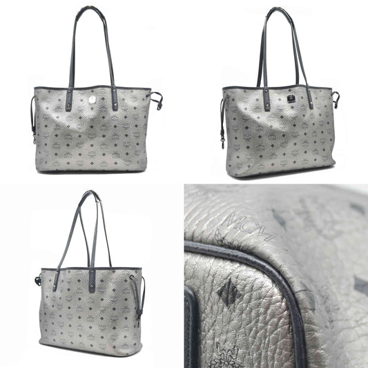 $770 MCM Tote Silver Metallic Liz Reversible Tote