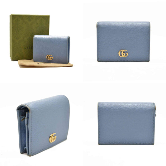 Gucci Dollar Calfskin GG Marmont Card Case Clear Sky Blue