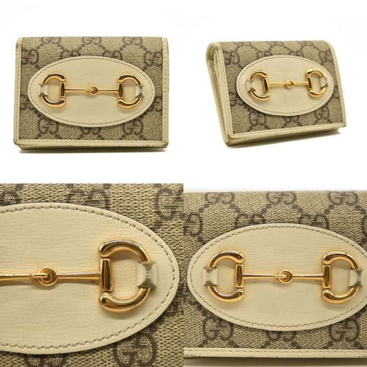 Gucci GG Supreme Monogram Textured Dollar Calfskin Horsebit 1955 Card Case Wallet Beige Mystic White Oatmeal