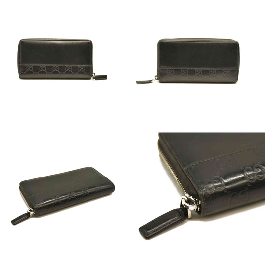 GUCCI Guccissima GG Logo Leather Zip Around Long Wallet Black