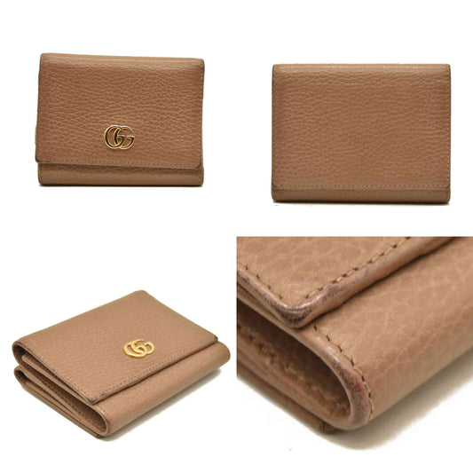GUCCI GG Marmont Leather Compact Trifold Wallet Beige