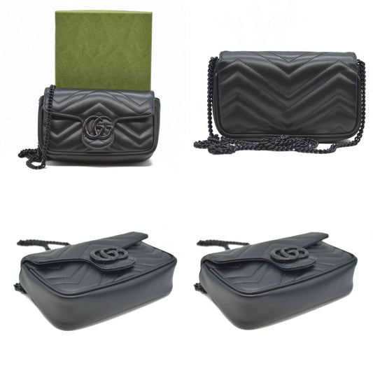 Gucci Calfskin Matelasse Monochrome GG Marmont Chain Bag Black