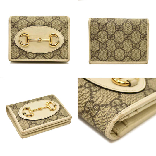 Gucci GG Supreme Monogram Textured Dollar Calfskin Horsebit 1955 Card Case Wallet Beige Mystic White Oatmeal