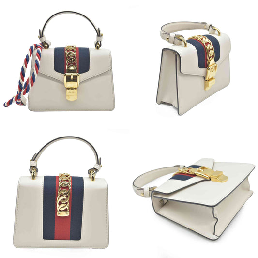 $2,590 Gucci Calfskin Small Sylvie Shoulder Bag Off White
