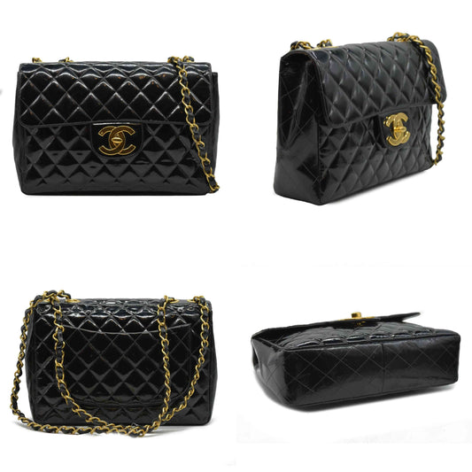 Chanel Shoulder Bag Deca Matelasse Black Enamel 3955737