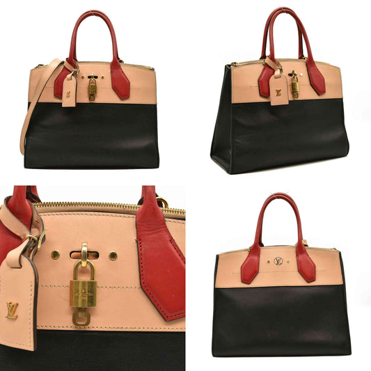 LOUIS VUITTON City Steamer MM City Steamer Handbag Noir Beige Red DU0156