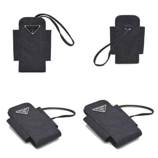PRADA Logo Plate Nylon Strap Cigaretto Case Black