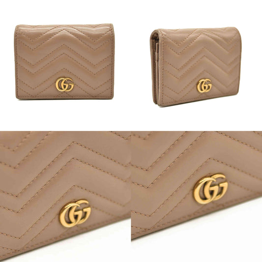 GUCCI GG Marmont Quilted Leather Bifold Wallet Beige