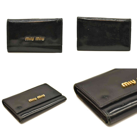 MIU MIU Logo Patent Leather 6 Ring Key Case Black