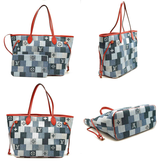 Louis Vuitton Denim Damier Monogram Patchwork Neverfull Blue Rouge MM4189