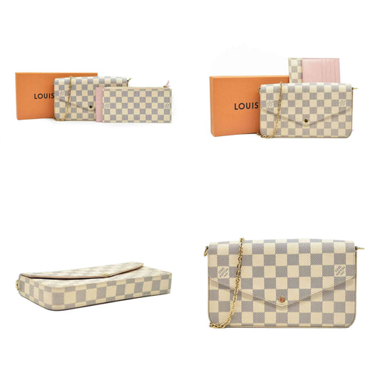 Louis Vuitton Damier Azur Pochette Felicie Chain Wallet Rose Ballerine AZ1169