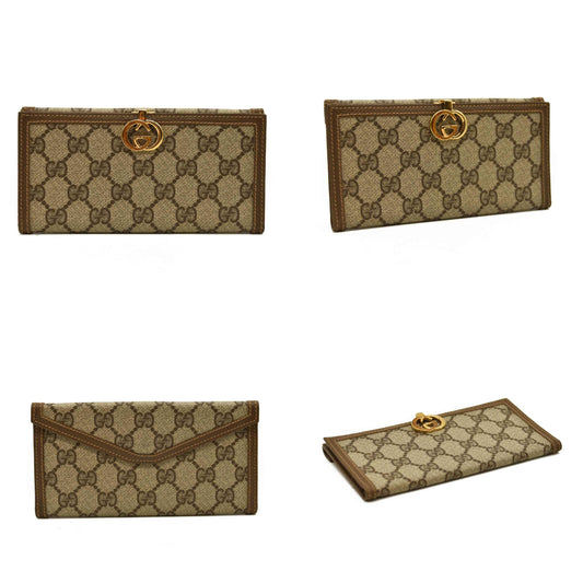 GUCCI Interlocking G GG Logo PVC Long Bifold Wallet Beige Green