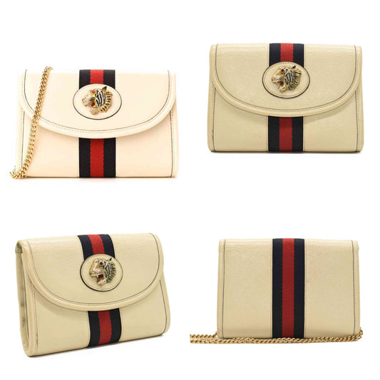 $1200 GUCCI Textured Calfskin Web Mini Rajah Slim Flap Shoulder Bag Mystic White